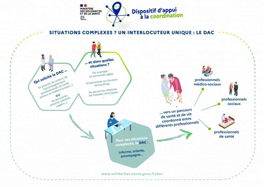 Un Dispositif d’Appui à la population et aux professionnels pour la Coordination des parcours de santé complexes (DAC).